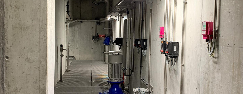 Da das Ganze acht Meter unter der Erde passiert muss das Wasser bei Leerung natürlich wieder hochgepumpt werden, dies geschieht über die im Vorraum aufgestellten Pumpen.