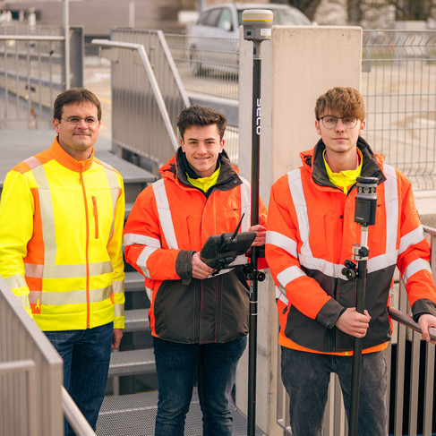 Mike und Dominik haben im September letzten Jahres ihre Ausbildung zum Vermessungstechniker begonnen und unterstützen unseren Vermessungsingenieur Stephan bereits sehr selbständig.