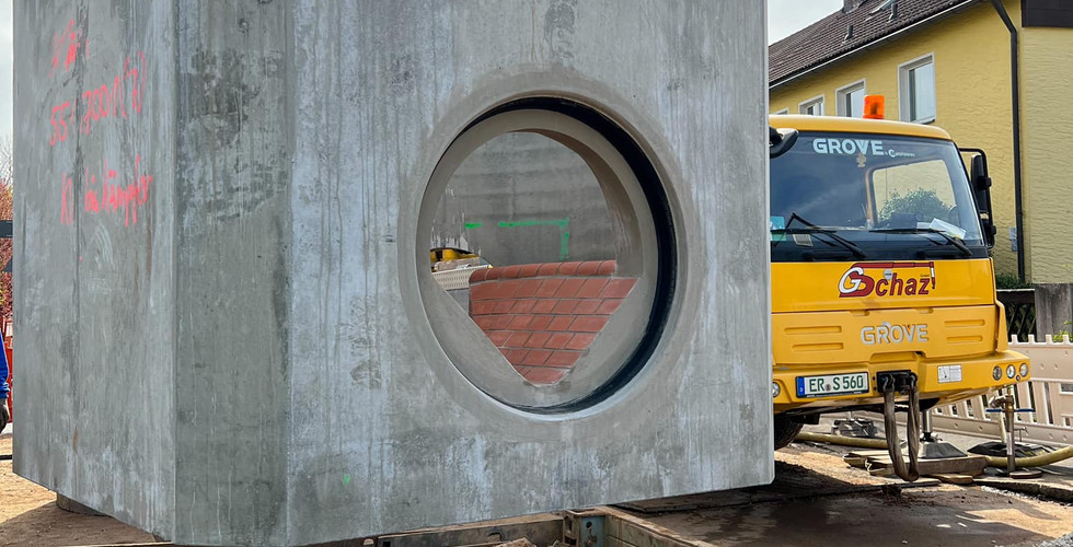 Heute wurde in der Theodor-Heuss-Straße das letzte große Schachtbauwerk gesetzt.