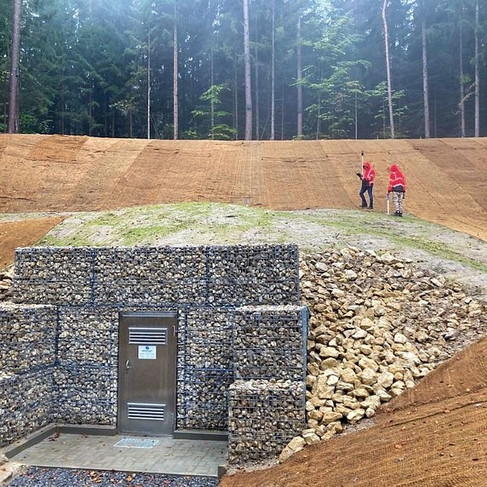 Selbst an Regentagen sind unsere Vermesser-Azubis eifrig bei den Absteckungsarbeiten an der Quelle Buchberg dabei.