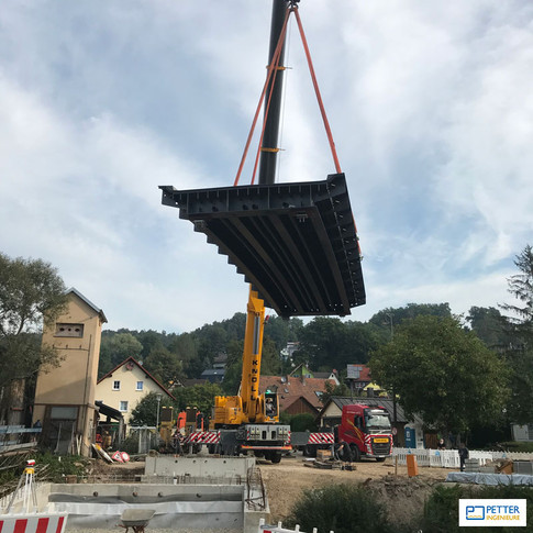 Meilenstein in Pattenhofen - Der Stahloberbau für die Brücke in Burgthann-Pattenhofen wurde per Kran durch die Lüfte gehoben und über die Schwarzach "gelegt".